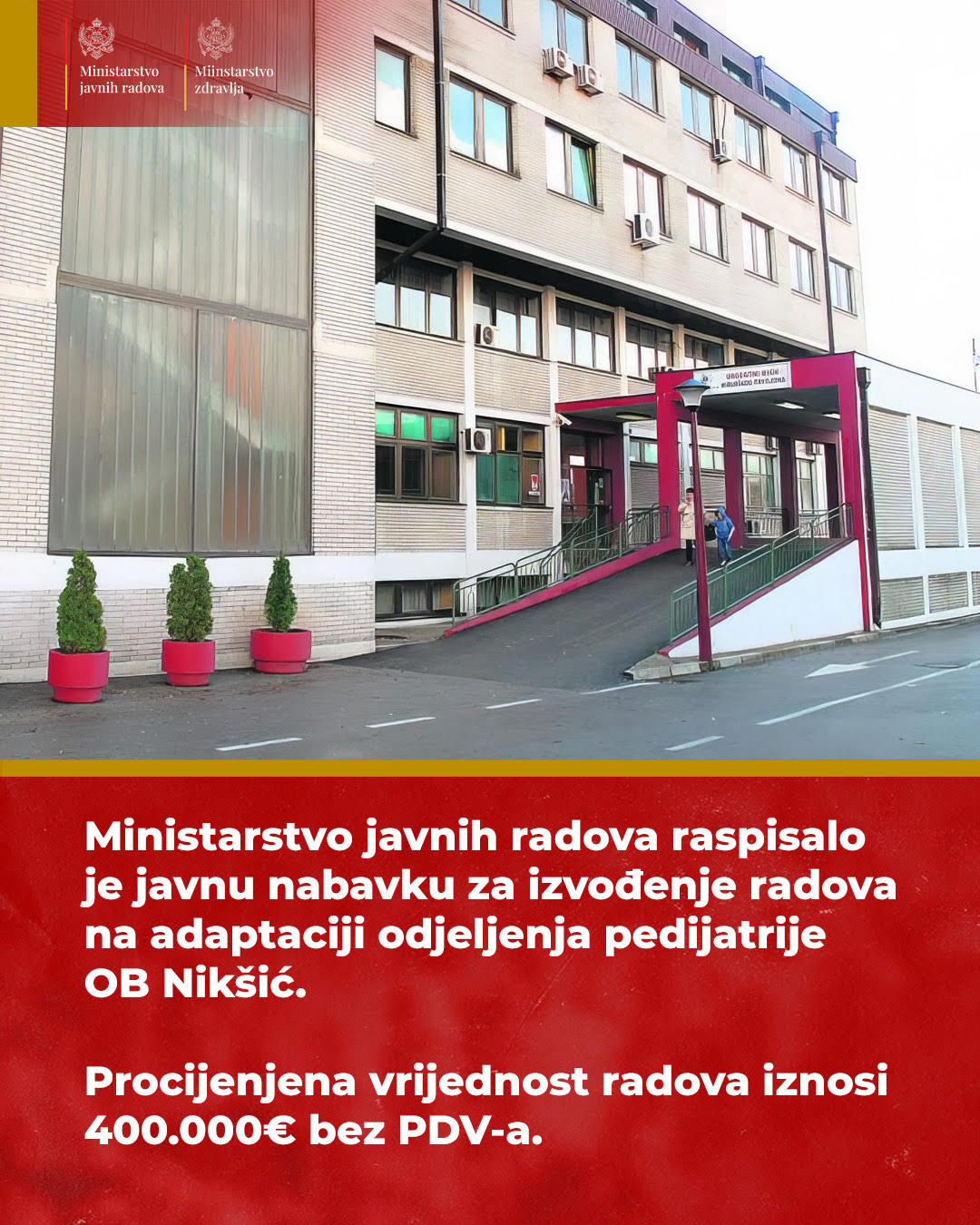 Raspisan tender za adaptaciju odjeljenja pedijatrije Opšte bolnice u Nikšiću