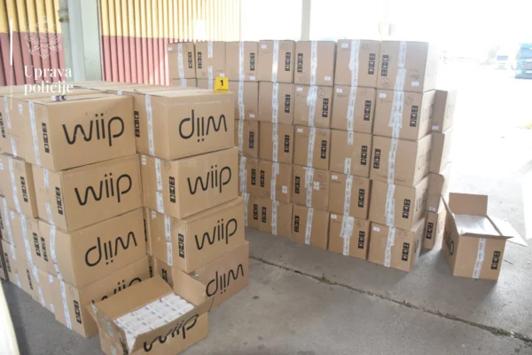 Pregledom tovarnog prostora priključnog vozila, dodaju iz Uprave policije, utvrđeno je da se u istom nalaze 104 paketa sa 15.750 komada nastavaka za elektronske cigarete marke WIIP i 58.606 komada aromatičnih ulja za elektronske cigarete iste marke, a za koje imenovani nije posjedovao potrebnu dokumentaciju.